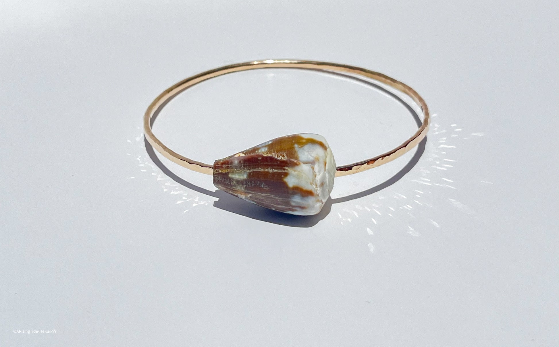 Elevate your style with the Pipeline Shell Bangle, a captivating piece inspired by the enchanting beauty of the ocean's depths, featuring a cone shell that evokes a sense of coastal allure and natural elegance, making it a perfect accessory for those who seek a touch of seaside charm