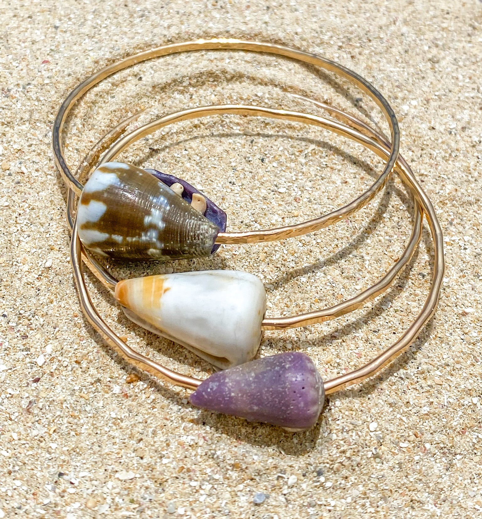 • Cone Shell floats freely on the bangle