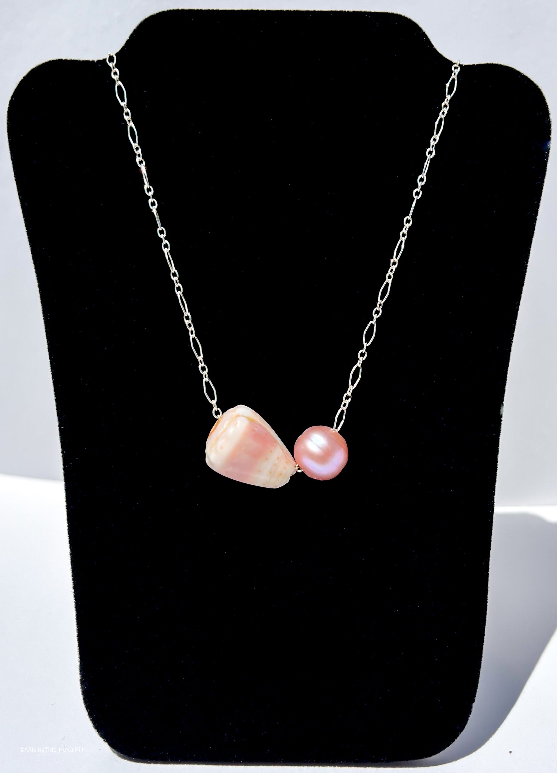 Capture the essence of the sea with our Ocean's Harmony Necklace, where the natural beauty of the intricately patterned shell combines with the iridescent elegance of the pearl, creating a unique and enchanting combination